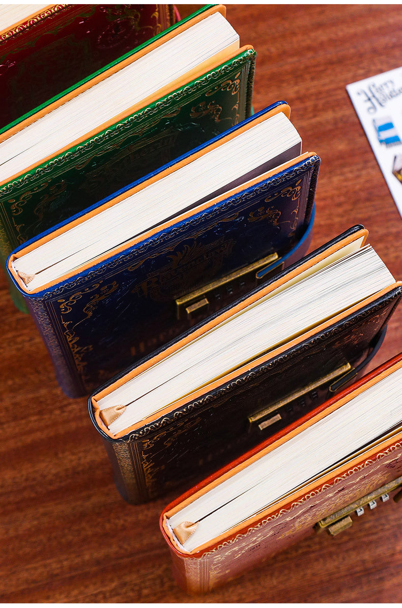Vintage Leather Locking Journal with Code Lock, Diary with Thick Non-Bleed Paper, Writing, Notes, (Slythrin) 112 sheets / 224 pages